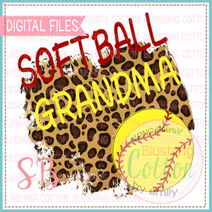 SOFTBALL GRANDMA LEOPARD PRINT BACKGROUND WATERCOLOR DESIGN BCSB